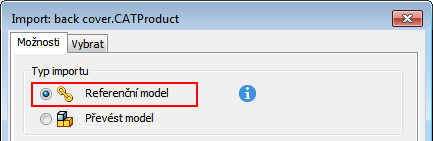 Některé typy souborů referenční model technologie AnyCAD nepodporují. Vyberte pracovní postup, který je pro váš návrh nejvhodnější.