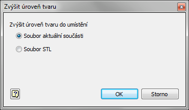 Příkaz Zvýšit úroveň tvaru uloží referenční tvar do formátu STL. Referenčním tvarem lze překrýt původní návrh a určit tak, kde má být odebrán přebytečný materiál.