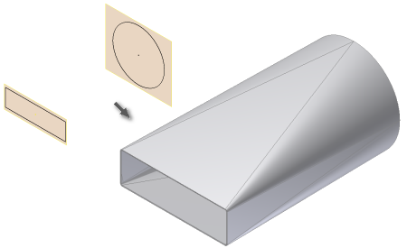 V případě výstupu tvarovaného zápustkou vytvořte hladký, zápustkou tvarovaný přechodový tvar ze dvou profilů náčrtu.
