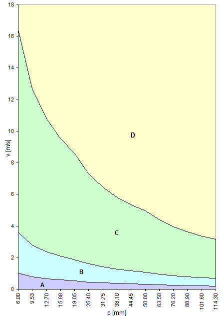 Přípustný tlak získaný z výše uvedeného diagramu se také upravuje pomocí konstrukčního součinitele řetězu. Velikost přípustného tlaku je určena následovně: