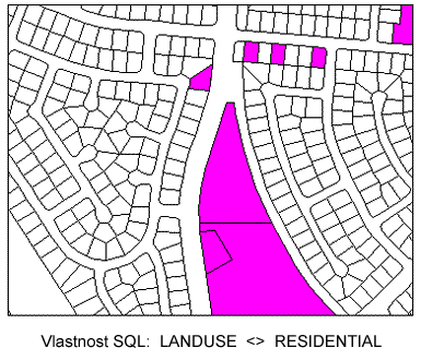 Uzavřené křivky načtené dotazem jsou vyplněny fialovým vzorem.