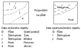 Pokud sousední polygony položku rozpuštění neobsahují, hranice se nerozpustí a hodnota této položky výsledného polygonu bude prázdná.