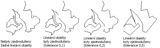 Zjednodušení lineárních objektů odstraní z křivky co nejvíce bodů při zachování původního koridoru tolerance.
