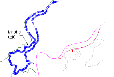 Při digitalizaci mapy mohou být hrany určeny detailněji, než je třeba. Pomocí možnosti Zjednodušit objekty můžete omezit zbytečnou složitost vrstevnic, řek a pobřežních linií. Zjednodušení objektů, také nazývané generalizace nebo začištění, zmenšuje počet bodů složité čáry.