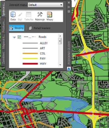 Téma zobrazující silnice podle typu