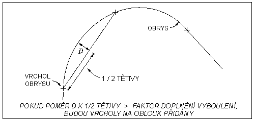 U křivek je hodnota vyboulení poměr vzdálenosti od oblouku k tětivě vydělená polovinou délky tětivy. Faktor boule přidá ke křivce vrcholy a vytvoří aproximaci křivky pomocí úsečkových segmentů. Délka těchto segmentů se liší podle faktoru boule a stupni zakřivení.