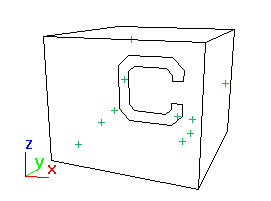 Der Emitter wird mit einem Buchstaben "C" für die Partikelwolke (engl. Cloud) angezeigt.