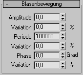 Anmerkung: "Blasenbewegung" wird als Zeit und nicht als Rate gemessen; ein sehr hoher Wert für "Periode" bedeutet daher, dass die Bewegung lange dauert. Es findet also praktisch keine Bewegung statt. Die Periode wird deshalb auf einen sehr hohen Vorgabewert eingestellt, damit die Standardbewegung dieses Typs Null ist.