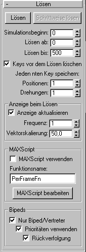 Anmerkung: Wenn Sie "Lösen bis" auf eine Frame-Nummer einstellen, die höher als das derzeit letzte Frame des aktiven Zeitsegments ist, ändert Character Studio das letzte Frame des Zeitsegments auf den Wert von "Lösen bis".