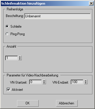 Die Dialogfelder "Schleifenaktion hinzufügen" und "Schleifenaktion bearbeiten" besitzen dieselben Steuerelemente.