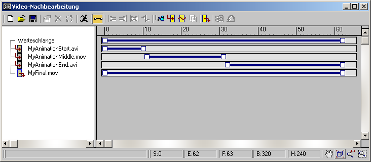 Die durch diese Vorgehensweise entstandene Animation kann beispielsweise als "Bildeingabeaktion" für eine andere Video-Nachbearbeitungssequenz verwendet werden.