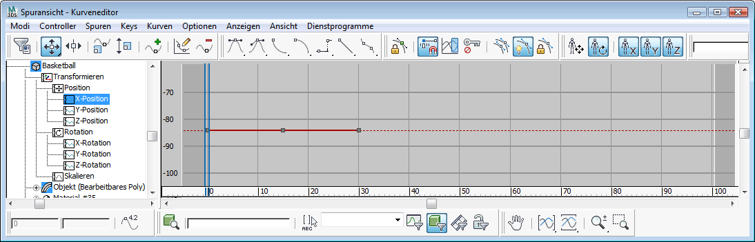 1. Klicken Sie im Kurveneditor Controller-Fenster auf die X-Positionsspur, um deren Kurve anzuzeigen.
