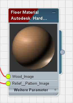 Nach dem Ändern des Bitmaps zeigt die Vorschau in der Titelleiste des Knotens des Floor Material die neue Holzmaserung an.