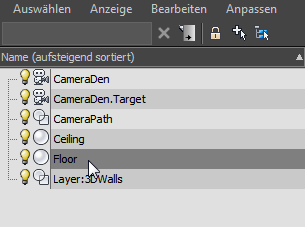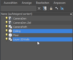 - Halten Sie im Szenen-Explorer die STRG-Taste und klicken Sie, um die Wand - und Deckenobjekte auszuwählen.