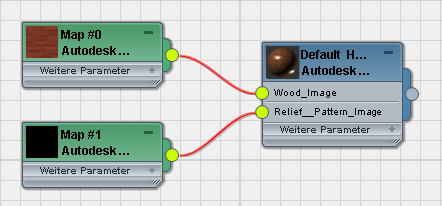 Bereich "mental ray".) Das Autodesk Hardwood-Material verfügt über zwei integrierte Bitmaps. Klicken Sie im erweiterten Material-Editor auf die Option "Zoom Grenzen", um den Hauptmaterialknoten sowie die beiden Bitmap-Knoten sehen zu können.