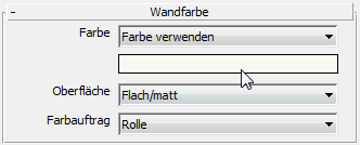 Lassen Sie "Finish" (Oberfläche) auf "Flat/Matte" (Flach/Matt) und "Application" (Farbauftrag) auf "Roller" (Rolle) eingestellt.