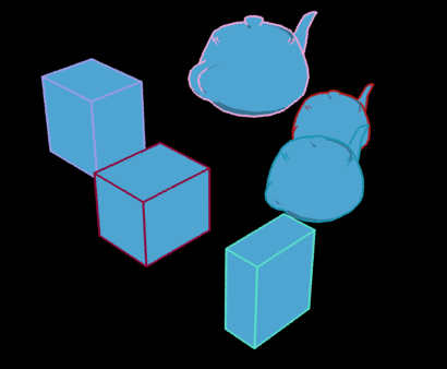 Drahtgitterfarbe, die im Cartoon-Material mithilfe des Objektfarben-Shaders als Konturfarbe angewendet wurde.