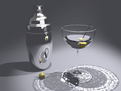 Zum Berechnen von Caustics verwendet der mental ray-Renderer das photon map-Verfahren. (Raytracing kann keine exakten Caustics generieren, und vom Vorgabe-Scanline-Renderer werden sie nicht bereitgestellt.)