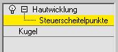 Wenn Sie "Hautwicklung" verwenden, befindet sich das Steuerobjekt in den meisten Fällen in der Nähe des geänderten Basisobjekts und wird es danach mithilfe der Funktion "Hinzufügen" des Modifikators an das Basisobjekt gebunden. Vorgabegemäß werden durch Verschieben eines Scheitelpunkts im Steuerobjekt nahegelegene Scheitelpunkte im Basisobjekt beeinflusst. Durch zusätzliche Optionen lässt sich einstellen, dass Flächen im Steuerobjekt stattdessen die naheliegendsten Punkte im Basisobjekt beeinflussen ("Mit Basisobjekt verschmelzen"). Umgekehrt können auch Punkte im Steuerobjekt Flächen im Basisobjekt beeinflussen ("Flächenverformung").