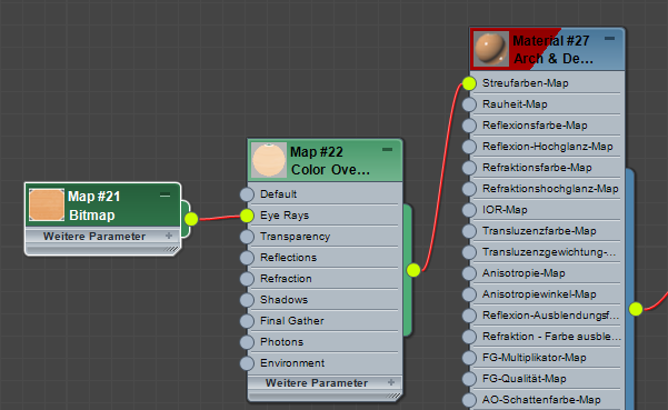 Die Lösung besteht in der Verwendung des "Farbe überschreiben/Ray-Typ"-Umschalters und dem Vernetzen des Streufarben-Maps, sodass nur "Eye rays" betroffen sind.