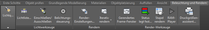 Bietet Werkzeuge zum Hinzufügen von Lichtquellen und zum Erstellen von Renderings.