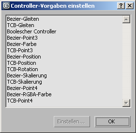 Änderungen an den Controller-Vorgabeeinstellungen werden in die Datei 3dsmax.ini eingetragen und gelten als Vorgaben für alle neu zugewiesenen Controller und alle neuen Szenen.