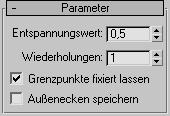 Bestimmt, wie oft der Vorgang Entspannen wiederholt werden soll. Für jede Wiederholung werden Durchschnittspositionen neu berechnet, und der Entspannungswert wird erneut allen Scheitelpunkten zugewiesen. Vorgabe = 1.