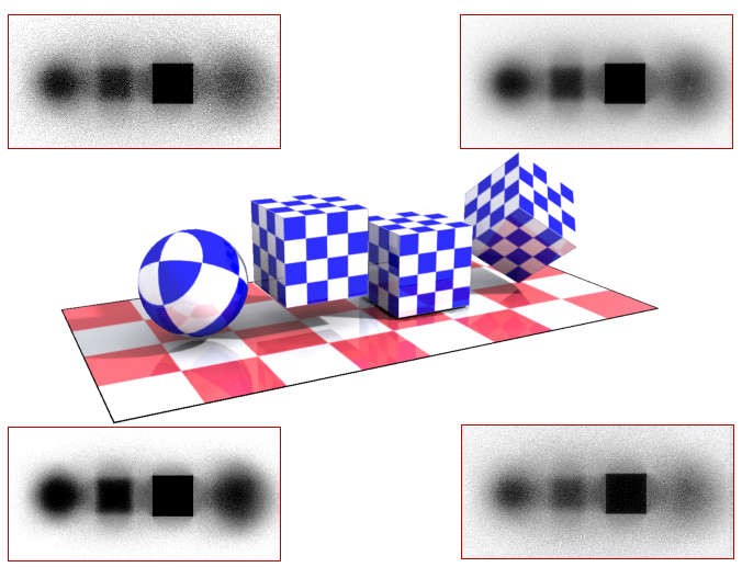Ursprüngliche Szene umgeben von in Textur gerenderten Umgebungsokklusions-Maps des Bodenobjekts