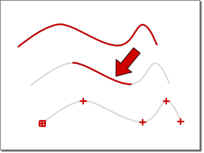 Der Pfeil und das Glanzlicht kennzeichnen ein einzelnes Segment eines Splines.