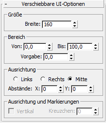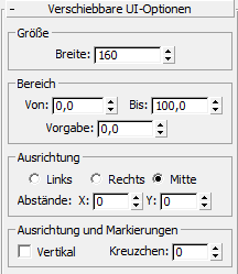 Rollout mit den UI-Optionen für Winkel/Gleitkommazahl/Ganzzahl/Prozent/Welteinheiten: Schieberegler