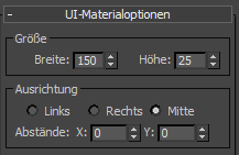 - Legen die Ausrichtung der Material-/Map-Schaltfläche im Rollout fest.