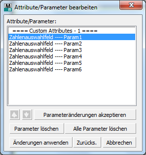 - Markieren Sie im Dialogfeld "Attribute/Parameter bearbeiten" den zu bearbeitenden Parameter.
