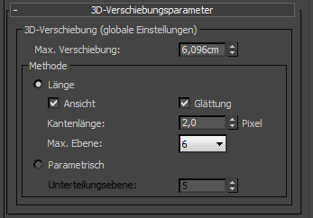 Anmerkung: Sowohl der mental ray-Renderer als auch der iray-Renderer verwenden diese Verschiebungs-Einstellungen.