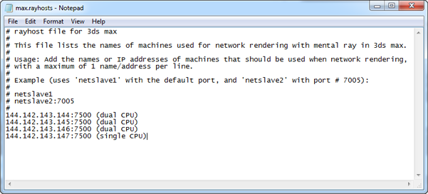 Außerdem sollten die Informationen zu jedem Satelliten in der Datei RAYHOSTS gespeichert werden. Sie können Satellitensysteme einrichten, indem Sie im Rollout "Verteiltes Bucket-Rendern" auf die Schaltfläche "Hinzufügen" klicken (siehe Beschreibung im Abschnitt "Benutzeroberfläche" unten).