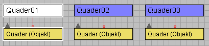 Der Text von Instanzelementen wird in der schematischen Ansicht fett dargestellt. Bei Knoten wird dies im Basisobjektelement angezeigt. In der Abbildung handelt es sich bei Quader02 und Quader03 um Instanzen.