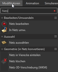 Durchsuchen des Menüs Modifikatoren nach Befehlen mit "Netz"