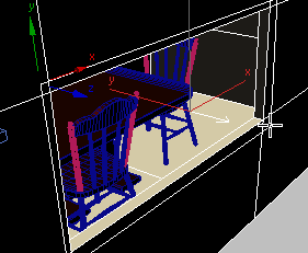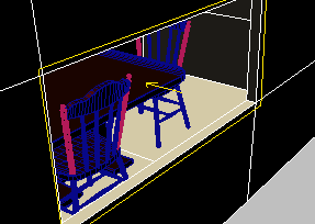 - Erstellen Sie eine Szene mit einem Raum mit Fenstern. Richten Sie in diesem Raum eine Kamera und ein Ansichtsfenster ein, das die Kameraansicht zeigt.