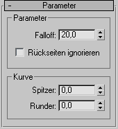 Die Parameter dieses Modifikators ähneln denen der Funktion "Weiche Auswahl" für ein bearbeitbares Netz oder bearbeitbares Poly.
