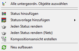 Um mehrere, jedoch nicht alle, Status zu rendern, markieren Sie die zu rendernden Staus. Klicken Sie dann mit der rechten Maustaste auf einen dieser, und wählen Sie Ausgewählte Status rendern aus.