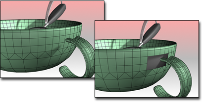 Mit "Netz löschen" werden die Flächen entfernt, an denen der Griff die Tasse berührt.