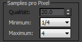 Legen Sie die minimalen und maximalen Sample-Raten für das Antialias der gerenderten Ausgabe fest.