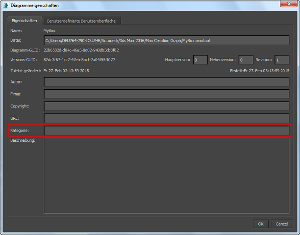 Um optimale Ergebnisse zu erzielen, speichern Sie die Datei im Standardordner ([Installationslaufwerk]:Benutzer\[Benutzername]\Autodesk\3ds Max [Versionsnummer]\Max Creation Graph\Pakete\). Teammitglieder, an die Sie die Paketdatei verteilt haben, speichern diese im entsprechenden Speicherort auf ihren Computern.
