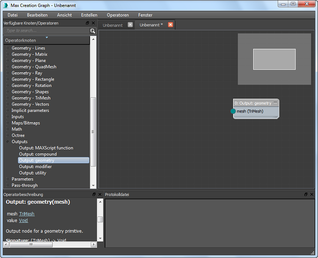 Im nächsten Schritt wandeln Sie die durch den CreateBox-Knoten erstellten Rohdaten in einen Geometrieknoten um, mit dem 3ds Max arbeiten kann.