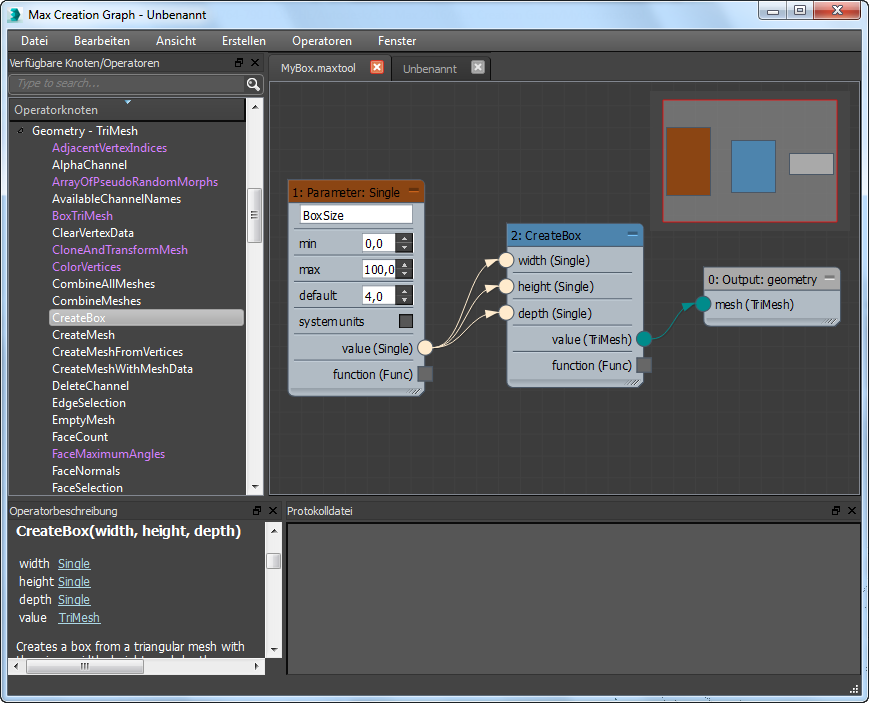 Dadurch wird der MyBox-Operator zur Kategorie "Geometrie – TriMesh" hinzugefügt.