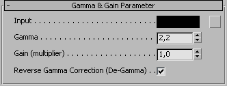 Dies ist ein einfacher Shader, der eine Gamma-Korrektur und einen Zuwachs (Multiplikation) auf eine Farbe oder ein Map anwendet. Dabei handelt es sich um eine alternative Methode, um Gamma in 3ds Max zu steuern. In verschiedenen OEM-Integrationen von mental ray gibt es viele ähnliche Shader, deshalb können Sie diesen Shader auch für eigenständiges mental ray und die Entwicklung von plattformübergreifenden Phänomenen verwenden.