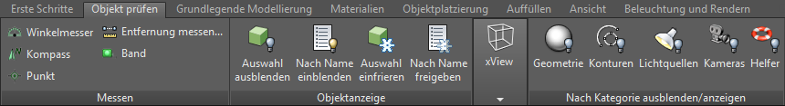 Enthält Steuerelemente zur Untersuchung der Szenengeometrie und zum Steuern der Anzeige des Objekts in Ansichtsfenstern.