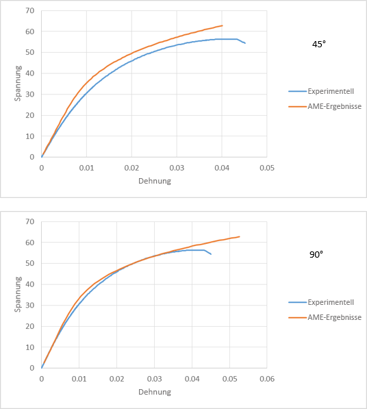 Advanced Material Exchange erfasst zuverlässig die Plastizitätsreaktion für die 45- und 90-Grad-Kurven.
