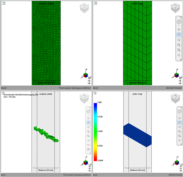 Es ist deutlich erkennbar, dass das Strukturmodell beginnt, die Form der Schweißoberfläche wie im Moldflow-Modell dargestellt anzunehmen, sobald das Netz des Strukturmodells verfeinert wird. Als bewährte Vorgehensweise wird empfohlen, eine Strukturnetzdichte von 1:1 oder feiner bezogen auf das Moldflow-Netz zu wählen.