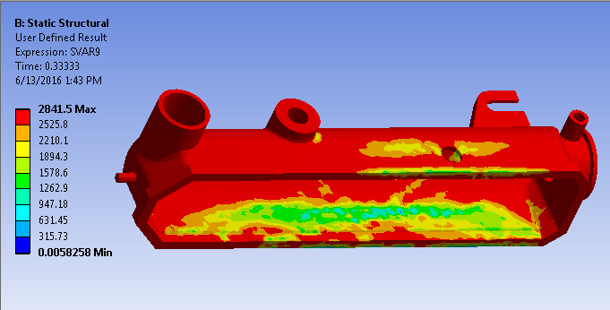 Das Anzeigen von Konturendarstellungen bestimmter Zustandsvariablen ist die beste Methode zur Bewertung der Strukturstabilität des Heizkörpertanks. Insbesondere untersuchen wir SVAR9, das Matrixtangente-Elastizitätsmodul.