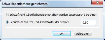 Zeigen Sie das Thema Stärke der Schweißoberfläche an, um weitere Informationen zur Berechnung und Verwendung von Stärkereduktionsfaktoren zu erfahren.